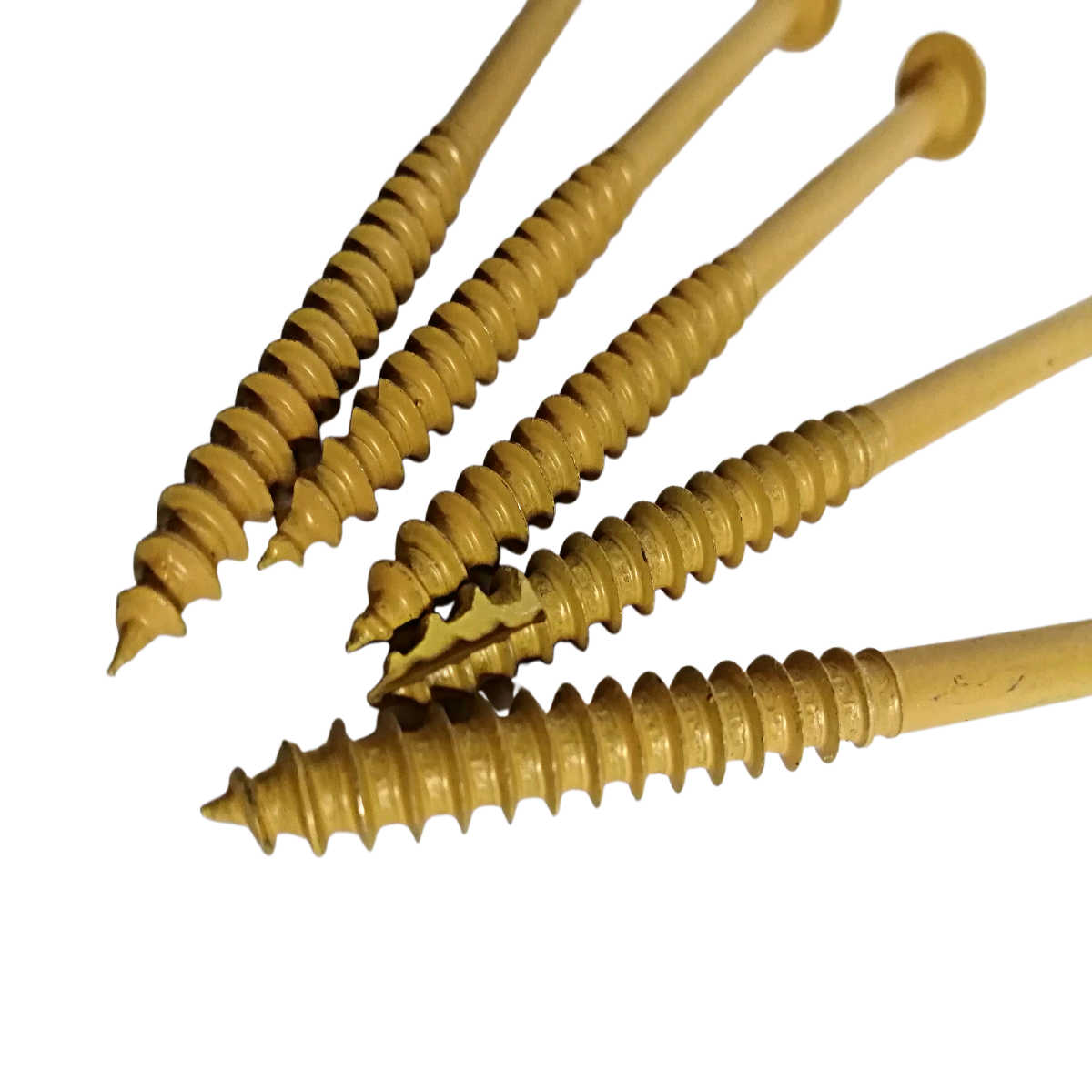 EvoShield 1000Hr ACQ Resistant Structural timber decking screws. Rifle edge to prevent splitting and coated yellow.